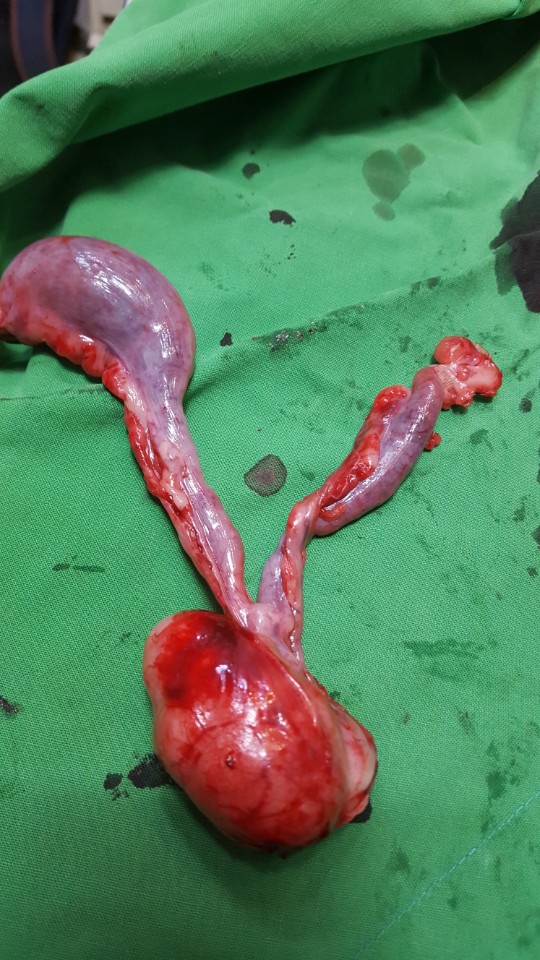 종양이 배 아래쪽에 위치해 있다 보니 종양이 요도를 압박하는 양상으로