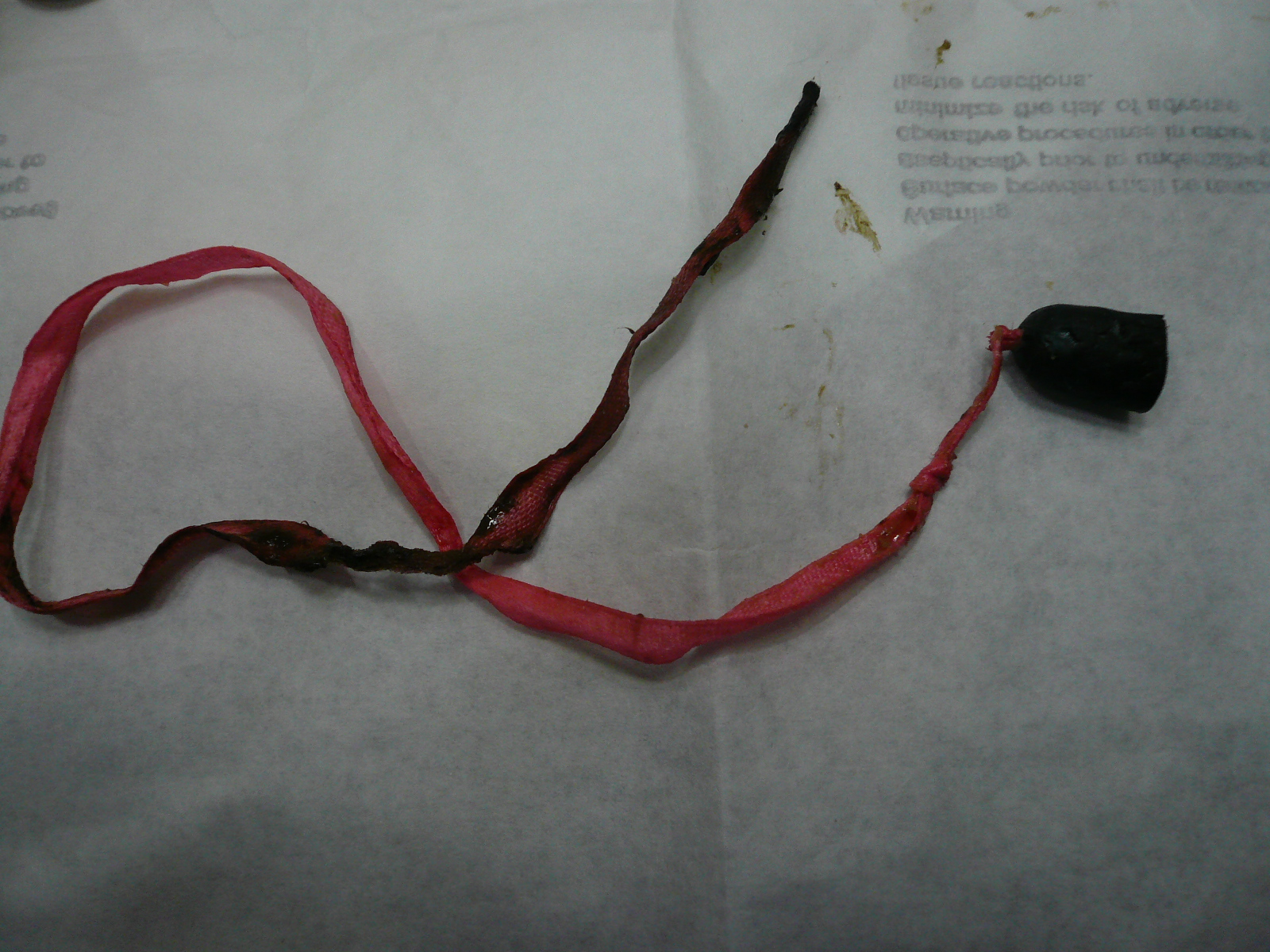 꺼내고 보니 귀마개가 아니라 고양이 낚시줄 장난감 일부를 먹은 것 이었습니다.